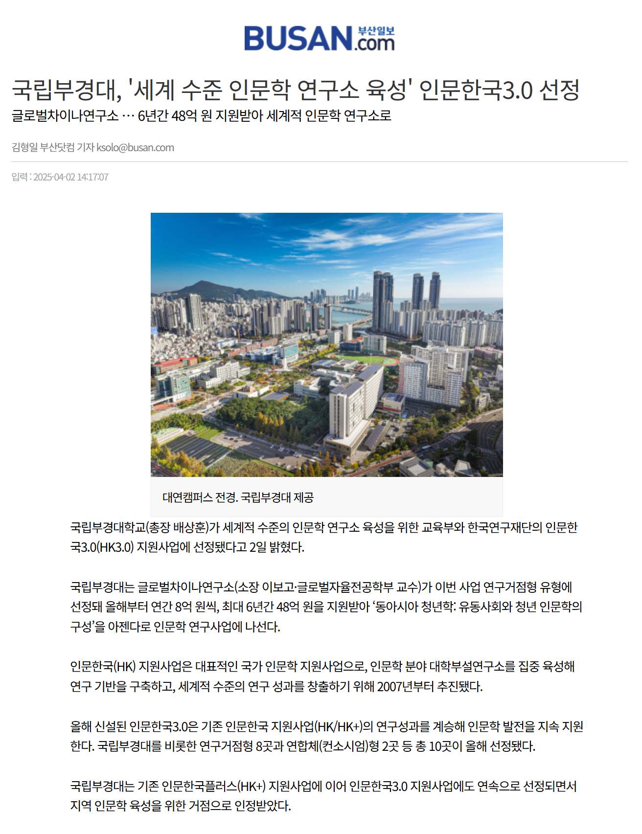 머니투데이 부경대 글로벌차이나연구소, 인문한국3.0 지원사업 선정