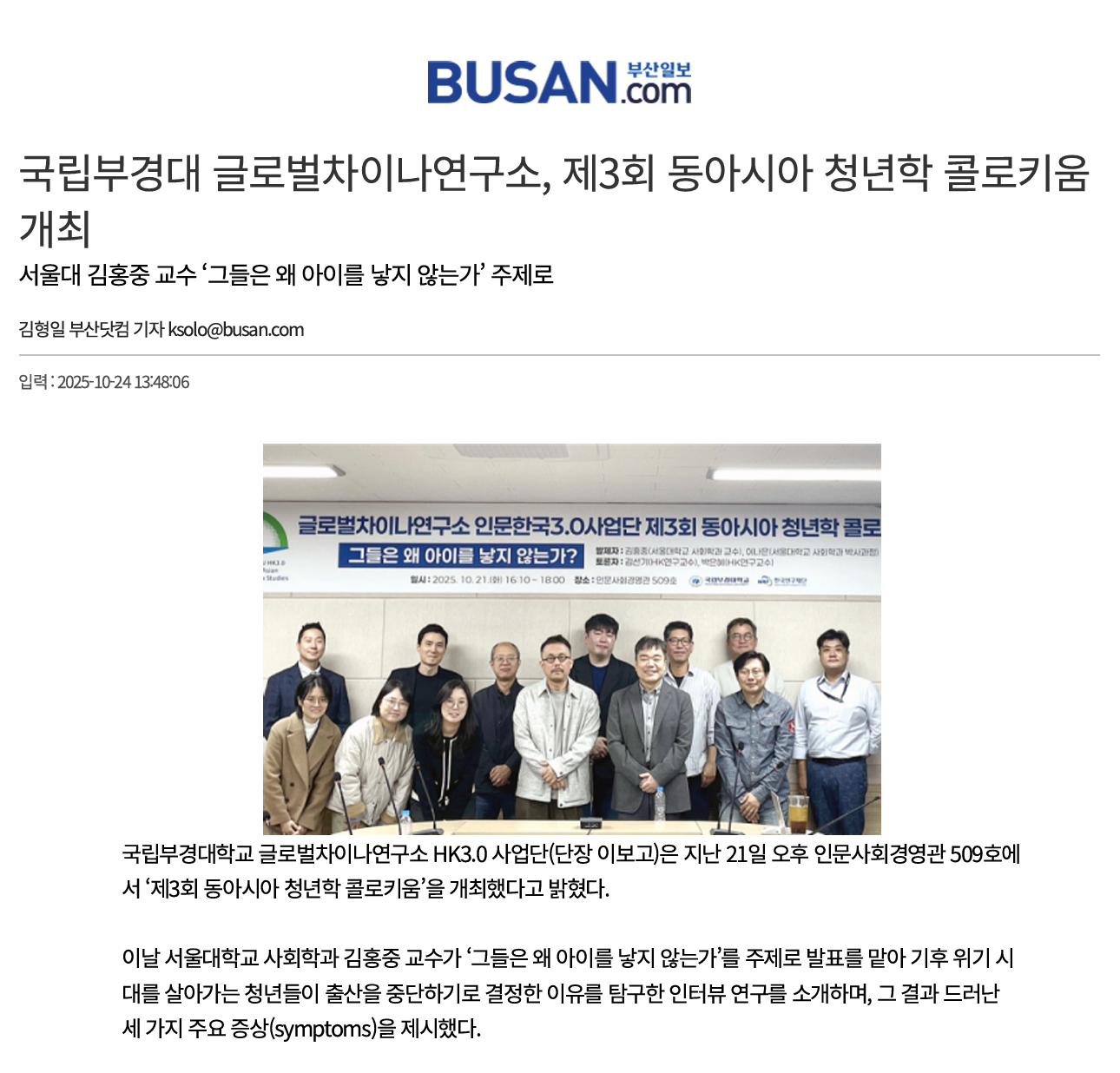 | [언론보도] 국립부경대 글로벌차이나연구소, 제3회 동아시아 청년학 콜로키움 개최(2025. 10. 24.) | |||
